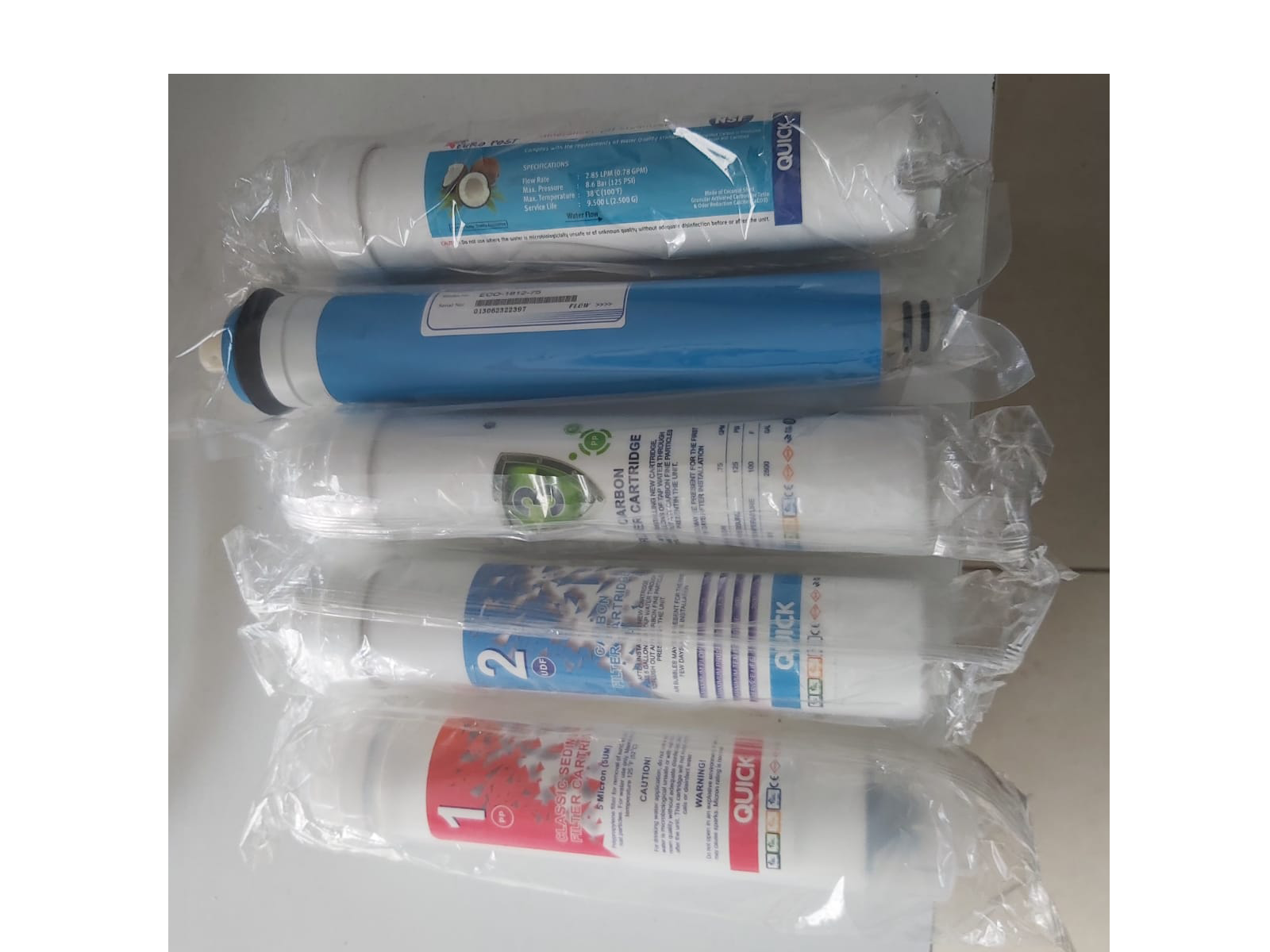 Şebeke sularında bulunan kum, çakıl, pas, tortu ve katı atık maddeler bu filtre aşamasında temizlenir. 1-5-10 Micron Sediment Tortu Filtrasyonu %100 Polipropilen hammaddesine sahip NSF onaylı ( NSF Belgesi, kullanıcı ve gıda denetleyicilerine, kullanılan temizlik kimyasalının gıda güvenliği açısından uygun olduğunu garanti eder. Ürünlerimize ait sertifikaları www.nsf.org adresinden “ White Book Nonfood Compound Listings Directory” de bulabilirsiniz. ) 1-5-10 Micron Sediment Tortu Filtrasyonu gözenek yapısına sahip 10 inch boyunda sediment, tortu. spun filtre sınıfının en kaliteli ürünüdür. Kaliteli malzemeden üretilmiş olan 1-5-10 Micron Sediment Tortu Filtrasyonu su arıtma cihazlarında genellikle 1. aşamada tortu tutucu olarak kullanılır. Görevi membran filtreye zarar verecek kaba ve ince partekülleri tutarak membran filtrenin düzgün ve sağlıklı çalışmasını sağlar. 1-5-10 Micron Sediment Tortu Filtrasyonu 3-6 ay (10 Ton) kullanım ömrü vardır, bu süre giriş suyunun kalitesine ve kullanım yoğunluğuna göre değişir.